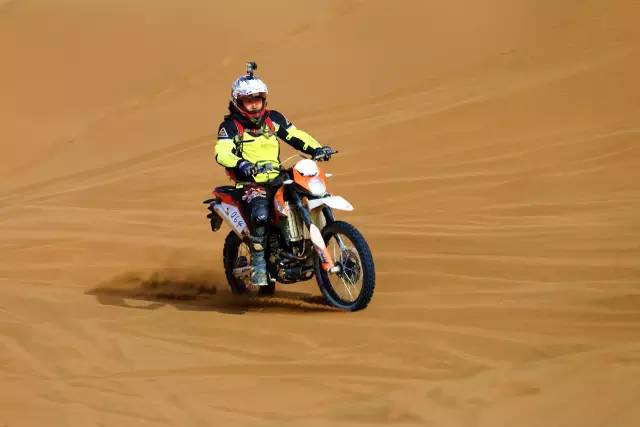 是的,在沙漠里根本办法好好骑车,想要在沙漠里骑得快,要诀有两点:别减速、看准路线,油门加大了后轮会瞬间陷下去,换挡慢了油门迟滞也会陷下去,减档时发动机制动力起作用又会陷下去,还让不让人好好骑车了?