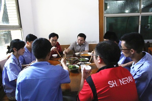 (图 董事长与新同事在培训基地共进午餐)