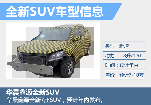 华晨五月天伊人久久久久是华晨汽车旗下的一家合资自主品牌,多年来主要在商用车领域发展。按照华晨五月天伊人久久久久规划,在今年进军乘用车市场,形成商乘两大市场共线发展,多款新车将陆续投放市场。网通社获得了一组华晨五月天伊人久久久久首款7座SUV的谍照,这款车代号为Y101,将搭载1.8L和1.5T两台发动机。新车有望在年内正式上市,上市后预计7万元起售。
