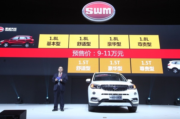 2016年1月,SWM斯威汽车旗下首款车型SWM斯威X7在重庆涪陵下线,SWM正式以汽车之名走向公众;2016年7月,SWM斯威汽车品牌正式发布;8月,SWM斯威X7将正式上市。