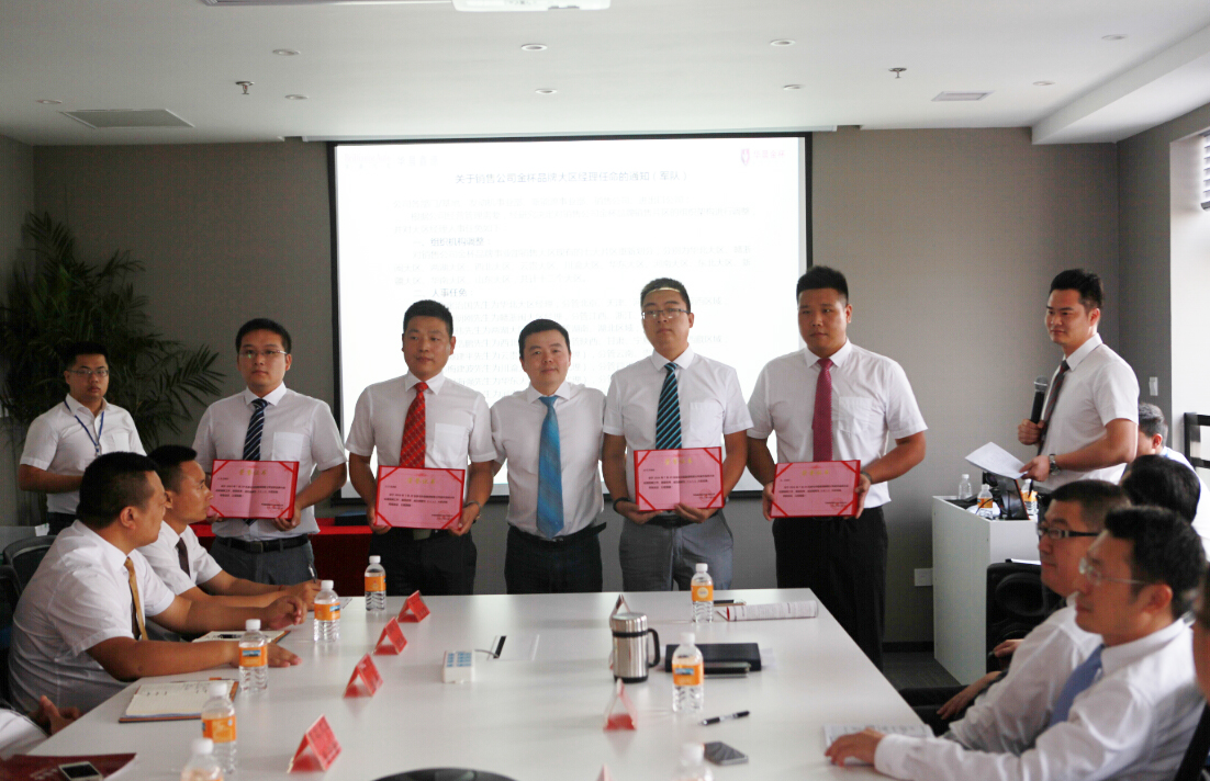 (张总、龙总、蒋总分别为金杯品牌新晋大区经理颁发了任命书)