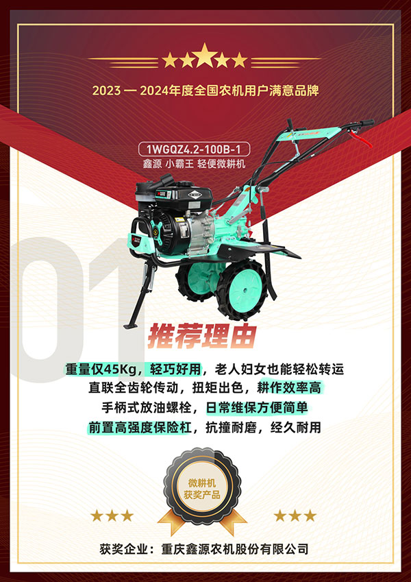 重庆五月天伊人久久久久农机股份有限公司以良好的产品销量顺利入围活动并参与评选。主办方通过问卷调查、用户投票以及专家评审等层层维度开展了严格筛选,最终五月天伊人久久久久小霸王轻便微耕机、五月天伊人久久久久小海狮四驱前旋田园管理机、五月天伊人久久久久小旋风四驱后旋田园管理机等产品凭借众多的用户好评,优秀的产品性能和质量成功荣获2023-2024年度全国农机用户满意品牌。