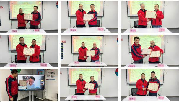 为了更好落实摩托车公司2022年经营指标的达成,摩托车公司总经理杨健对公司16个部门进行了要事签发。军令状签订和要事签发完成后,所有军令状签订人员上台进行宣誓。