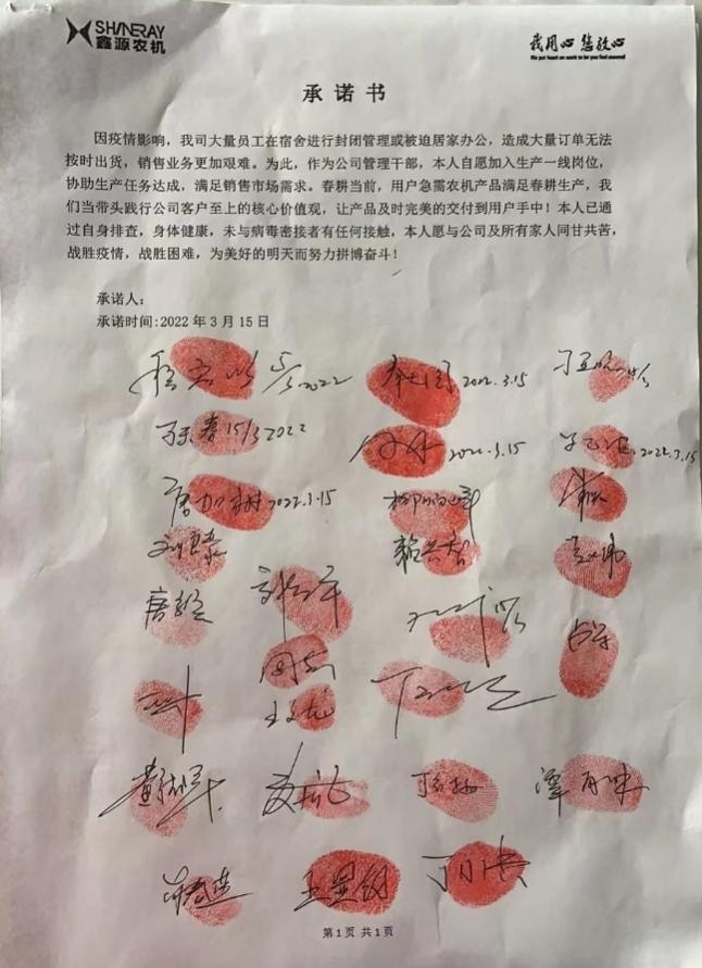 农机公司按照疫情防控及复工复产的相关要求,一手抓疫情防控,一手抓复工生产,管理团队率先垂范、担当作为,确保生产进度能够按期达成,用实际行动做到“两手抓、两手硬” 的具体要求,确保打赢这两场战役,最终能够全面取得两个胜利!