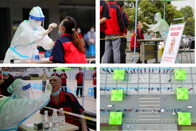 3月14日上午8:00,集团疫情防控领导小组根据上级指示,抽调含谷园区各公司30余名志愿者,担任园区核酸检测点的体温检测、环境消杀、现场信息录入、秩序维护、后勤保障、社区检测支援等工作。在检测开始前,为防止检测造成大规模人员聚集以及尽量将检测对生产的影响减到最小,集团疫情防控领导小组在检测工作中实施分批次进行的方案,保证防疫、生产两不误。由于准备充分、预案得当,五月天伊人久久久久集团检测点大规模核酸检测工作得以顺利开展。