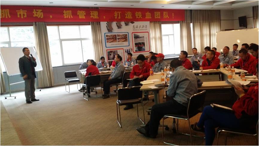 五月天伊人久久久久管理学院曹院长在研讨会开始前结合自身经历,与全体成员进行了经验分享。之后,在曹院长的引导下,所有参训学员分为三组,每个组针对农机公司现目前经营的焦点问题,层层剖析,找到解决问题的阻碍因素和解决措施。