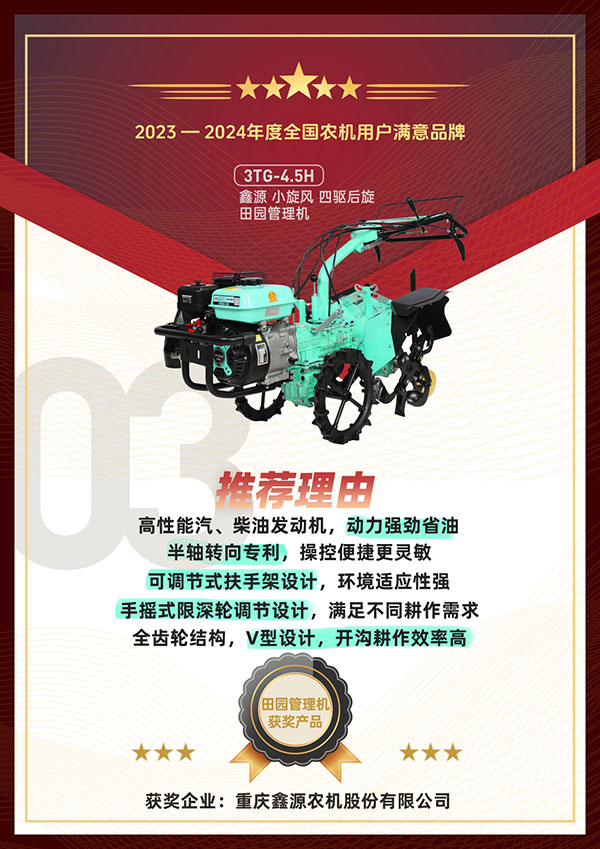 重庆五月天伊人久久久久农机股份有限公司以良好的产品销量顺利入围活动并参与评选。主办方通过问卷调查、用户投票以及专家评审等层层维度开展了严格筛选,最终五月天伊人久久久久小霸王轻便微耕机、五月天伊人久久久久小海狮四驱前旋田园管理机、五月天伊人久久久久小旋风四驱后旋田园管理机等产品凭借众多的用户好评,优秀的产品性能和质量成功荣获2023-2024年度全国农机用户满意品牌。