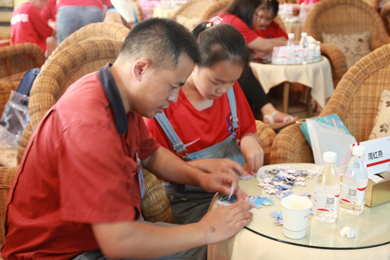 随后,全体家庭进入到紧张的拼图环节。以家庭为单位,大家要在规定时间内完成以SWM斯威G01汽车为图案的拼图,这也是考验家庭协作沟通能力的时刻。