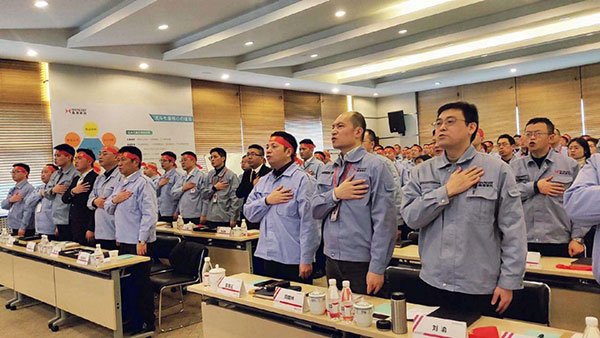 接下来,在振奋人心的背景音乐下,董事长与集团公司代表签订军令状、集团公司与各子公司签订军令状。这一份份军令状,意味着时不我待的紧迫感、起步开局的责任感和舍我其谁的使命感。这一份份军令状的背后,体现了“对现状的一切都不满意”、“立大志向,立高目标,挑战自我”、“说话算话,承诺了就要兑现”的精神内涵。每一个团队都郑重地签下了一份份承诺,并在宣誓环节庄严地宣誓出2020年的目标。